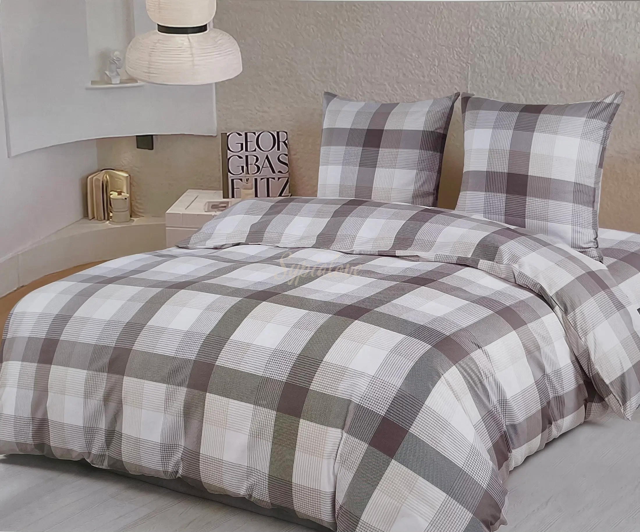 Komplet pościeli bawełnianej 160x200 w szarą kratkę 2044